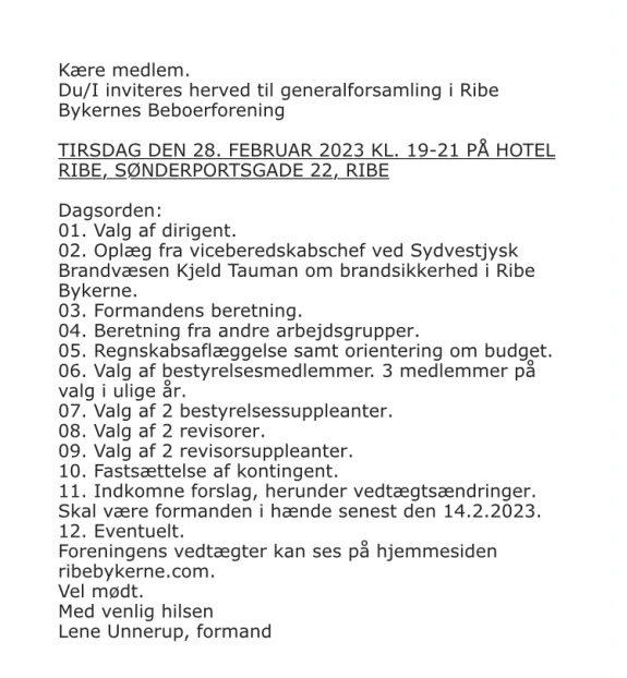 Referat fra Generalforsamling i Ribe Bykernes Beboerforening 28.02.2023